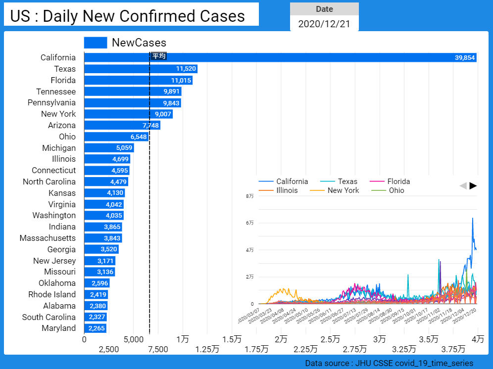カリフォルニア州は、イギリスよりも多く。カリフォルニア州で感染拡大が続いています。