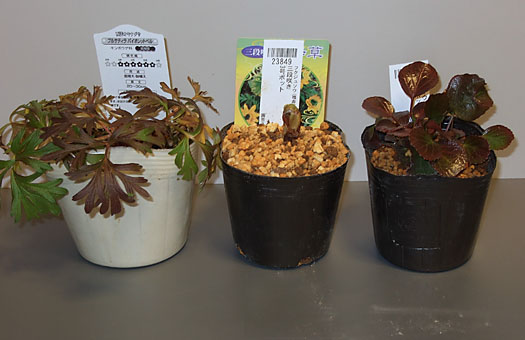 カゼの諸症状は殆ど取れましたが、咳だけがいつもの通りで残ってしまいました。この残りものの咳は、まあ持病のようなもので、完治まで1ヶ月位は覚悟しなくてはいけません(涙)。 という話とは関係なく、性懲りもなく今年の第1弾の花苗調達です。品種は左からプルサチラ・ブルガリス、福寿草三段咲、イワウチワの3点です。かなり暖かい温室で育てられたものらしく、前2者は既に花芽が立ち上がっています。これらは花後まで植え替えはできそうにありません。 プルサチラは既に我が家では10株近くに達する大家族が存在しますが、花弁の数が7枚以上、時には9枚にも達する変り種です。ルーツは1株の変り種なので、この先この状態に変化は期待できません。で、端正な6弁の正統派プルサチラも欲しくて、今回追加手配となりました。当面はポット住まいですが、いずれは路地植えに切り替えていくつもりです。