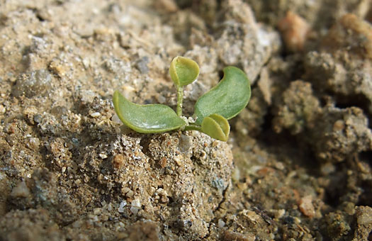 種蒔きの遅れた白花レンゲにやっと本葉が出始めました。二枚葉が出てから1ヶ月かかって、やっとこの状態です。さすがに今年の厳しい冷え込みは応えるようで、成長ペースはカタツムリがサイドブレーキを引いたまま歩くような鈍足ぶりです。雑草系農作物とはいえ、発芽直後のこの寒さはきつかったらしく、12月始めに10数芽確認できたものが、今生き残っているのはわずかに3芽だけです。あと半月耐えられれば、気候的には随分楽になるのですが、果たしてそれまで耐え抜けるかどうか・・・、サバイバル生活は続きます。 冒頭で”白花レンゲが・・・”と言ってしまいましたが、正確には”白花レンゲの株に実った種子・・・”と言う方が正しい表現になります。同じ要領で採取した種子で、昨年の場合2/3が白花で、残りは普通の赤花が咲いてしまいました。何世代かにわたって赤花株をツボミ段階で駆除して行けば、白花開花の割合は高まるだろう・・などと軽く考えていたのですが、計画は今年で頓挫しそうな、何とも心細い道に入り込んでしまった模様です。