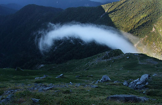 この1年が穏やかな年でありますように...皆様にとって実り多き1年になりますようお祈り申し上げます。さて、辰年がやって来ました。画像は雲に化けて山から山、里から里を往来する『龍』の姿を捉えたものです(ンな訳ないか ^^)。でも、先端部の渦を巻く雲の様子が、龍の角かヒゲのように見えなくもないでしょう。山野徘徊を重ねていると、こうした特異な自然現象に遭遇することもあります。 それはそれとして、今年も野に山に、花子に会いに出掛ける機会をできるだけ多く持ちたいと思っています。今年もよろしくご愛顧のほど、お願い申し上げます。