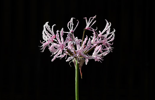 先月5日、原種ネリネ・ピンク花の初花開花を紹介しました。あれから既に5週間を超えましたが、現在も大した容貌の崩れもなく咲き続けています。何ともびっくりさせられるような長寿命です。同じ仲間のヒガンバナの場合、4-5日で散ってしまいますが、この花は軽く7-8倍の長寿命です。花弁もシベも強力な冷蔵倉庫にドップリ漬かっているようなものと考えれば、長寿の秘訣が納得できなくもない・・ということでしょうか。 栽培にあたっては、暑さや乾燥にも甚だ強く、殆ど手間をかける必要はありません。家畜やペットに例えれば、ほとんど”放し飼い”に近いのですが、きっちり分球して数は増えています。育ての親にしてみれば誠にありがたい存在です。