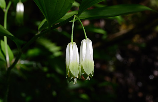 10日、11日の2日間、山形県の飯豊山系・地蔵岳(1539m)に行って来ました。花見登山を目論んでいたのですが、こちらは空振りに終ってしまいました。見込み違いとなった理由の1つが今年の豪雪の余波で、過去の山行と比べてかなり残雪は多目でした。雪解けの早かった南向きの尾根などでは、そこそこ開花してはいましたが、2つ目の理由でダメになっていました。理由の2つ目は、前日(10日)かなり強めの雨が降ったようで、この時点で開花していたカタクリ、オオイワウチワ、キクザキイチゲなどは花弁が雨に叩かれてヨレヨレになっていました。遠くまで脚を運んで空振りになるとショックは倍増で、現在ワタクシはかなり落ち込んでいます。 それはそれとして、画像は標高800m付近で咲いていたホウチャクソウです。こちらは花弁の造りが丈夫なのか、いずれもシャキっとしていました。日差しの当った白い部分が白飛びしないよう、光量を絞った結果、背景の日陰は真っ暗になってしまいましたが、実際の見た目はこれほど極端な色調の沈み込みはありません。 次の記事≫