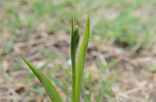 ネジバナ(捩花)に花芽が立ち上がって来ました。画像は芝生に移植したもので、我が家のネジバナストックの中では、先頭を切っての始動です。露地植えの長所として、特段の潅水なしでも元気に育っていますが、反面、人に踏まれたり、芝刈りで頭を刈り取られたり・・・と言った被害が絶えません。現にこの花芽も本日何者か(ほぼ100%、犯人はワタシ!)に踏まれて横たわっていました。ま、その辺は準・野生の逞しさで、リカバリーしてくてるものと信じて様子を見守ることにします。 もう一方のプランターに植えたものは・・というと、こちらはジリ貧になっていて、残存株数は昨年と比べて半減してしまいました。大切にしていた白花株もダメになったようで、再度品揃えをし直さなくてはいけません。