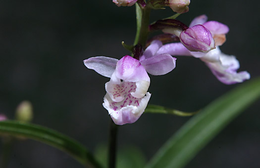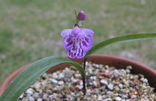 ウチョウラン(羽蝶蘭)の第2走者が開花しました。2日前に開花した第1走者と比べても、唇弁の模様は簡素な上に淡い仕上げっぷりで、何とも地味な構成です。この個体の強みは丈夫なこと・・・の一点に尽きます。同時期に買い求めた他の品が、次々姿を消して来た中で、6株が増えも減りもせず勢力を維持しています。ということで、特段の美人とはいい難いものの、数少ないウチョウランの中の希望の星でもあります。 草丈は10cmほど、花の大きさは1cmほどしかありません。山野に自生しているものがあったとしても、余程密生していない限り、ほとんど見落して通り過ぎるに違いありません。と言いつつ、分布や自生地の環境条件など殆ど知識は持ち合わせていません。一度いつもの方法で調べてみようと思います。