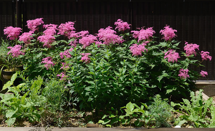 今朝の記事の続きです。画像はシモツケソウエリアの全景ですが、昨年と比べると前に植えたアポイギキョウやオキナグサが大きく育ってしまい、主役が隠れるようになりました。花の総量は増えも減りもしていない、つまり殆ど進歩がなかったことになります。来年はこの1.5倍を目標に増やしてみようと思います。(画像クリックで拡大表示します)