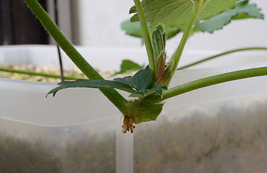 イチゴ(女峰)の株元から伸び出した匍匐枝(ライナー)に分身が発生し、その分身に根が出始めました。まだ発根が始まっていないものも含めると、こんな分身がざっと30芽ほど確認できます。何とも凄まじい増殖ぶりです。我が家に珠に立ち寄る諭吉さんも、手元にあるうちにこのように増えてくれれば有難いのですが・・・ 前回このイチゴに登場して貰った際、こうした分身に着床を認めるかどうかは、実を食した上で味の良し悪しで決める旨書き込みました。結果は”合格”でした。現在形成されつつある分身全てを収容するスペースはありませんが、できるだけ多くの分身の受け皿を用意して、来春の収穫増に繋げてみるつもりです。