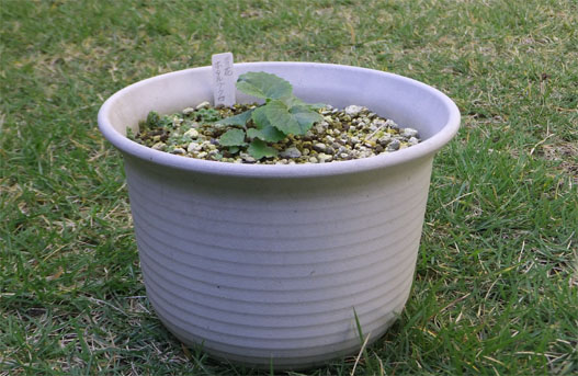 今回紹介するのは日本サクラソウ「鋸峰」です。この春の芽出しは、ポットの中心をややずれたところに顔を出してしまいました。半年の間に塊根は更に伸びてしまい(円内)、このままだと更に隅に寄って芽を出すことになってしまうところでした。加えて用土はゼニゴケの幼生で真っ黒に変色しています。このままだと、多分年内に一面青々とゼニゴケに覆われることになりそうです。 ということで、用土を全面的に新しいものに交換した上で、芽出しがポットの中心付近となるよう、適正な位地に植え替えることにします。来春の芽出しは多くても2芽どまりになりそうなので、住いはこのまま(3.5号陶鉢)我慢して貰うことにします。赤玉土0.6、鹿沼土0.4に固形培養土、化成肥料を適量混ぜたものに植付けて作業を終了しました。この個体はこの春は花を付けるのを見送ってしまいましたが、多分来春は大丈夫だろうと思います。 期待してるヨ!!