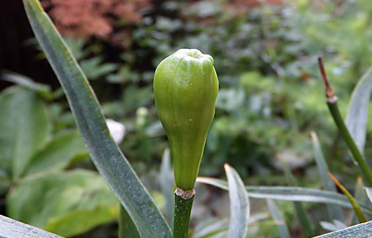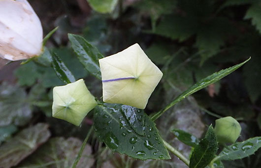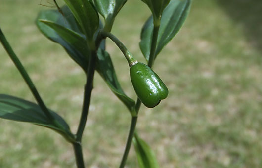 ホウチャクソウ(宝鐸草)の「肩紅花」が種子を結んだようです。ピーマンのような形の果包が日々大きさを増しており、受粉に成功したことは間違いなさそうです。現在の大きさは直径5mm、長さ8mmほどで、例を上げれば大豆粒に近いサイズです。このような果包が2つ成長しつつあります。我が家ではユリ科の草花が種子を結んだ例はなく、この先これが発芽可能なところまで成熟するかどうか、大注目です。 さて、これが順調に成熟を続けたとして、それをどう活かすかは慎重な考慮が必要です。種子を蒔いて1年か2年で開花するものなら育ててもいいのですが、5年、6年といった長丁場になるようなら放棄せざるを得ません。この点に関するWeb記事にはなかなか行き着けないのですが、種子が成熟するまでかなりの時間がかかりそうなので、もう少し調べてみようと思います。
