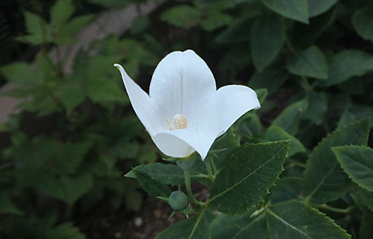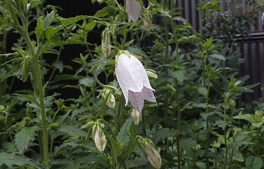 ホタルブクロ(蛍袋)が開花し始めました。開花初日には2輪が開花しただけでしたが、周回遅れで後を追うツボミが大量に控えており、近日中にプチ花壇を白く染めるように咲き揃うことになりそうです。品種的にはごく普通に山野で見られるもので、釣鐘型の花弁の外側は白ですが、内側には小さい紫の斑点を無数に散りばめています。 特段きれいな花ではありませんが、子供の頃この花にお尻の光る虫を閉じ込めて遊んだことを思い出して、2株か3株をこの場所に植えていました。それが僅か1年で10数倍に増えてしまい、他の生命力の貧弱な品種の脅威になってしまいました。花後大ナタをふるって、株数の縮小に取り掛かるつもりですが、削減対象の一部は近所の草むらに移植して、定着するかどうか様子を見てやろう・・などと、良からぬことを企んでいます。