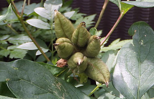 重弁ヤマシャクヤク(Paeonia rochii )が正常に受粉したようで、種子が日々膨らみを増しています。大きさは一般的なモニターなら、上の画像でほぼ実物大といったところです。 といってもこの種子、この先無事に成熟したとしても、種蒔きまでフォローしてやれるかどうかは、ちと微妙です。何しろ種蒔きから花を咲かせるまで7~8年もかかる相手であり、育て抜くだけの時間が保護者に残っているかどうか自信がありません。せいぜい花壇の一角にスペースを確保してやるぐらいがフォーローの限界で、後はこの子達の生命力に任せることになりそうです。