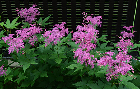シモツケソウ(下野草)が満開期を迎えました。といっても、まだ開花していないものがかなり残っています。画像から読み取るのは難しそうですが、未開花の比率は10~15%といったところです。その一方で最初に開花したものは既に散り始めており、全体としては今が花のボリューム感は最も大きい・・と言っていいと思います。こんな高原状態が1週間程度持続します。開花後1~2日しか持たないことが多い夏の花の中では、長期間目を楽しませてくれる貴重な存在です。 難癖をつけるとすれば、例年と比べて草丈が幾分低いことです。昨秋、かなり乱暴な株分けを行ったことで、そのダメージ回復にスタミナが割かれてしまったのかもしれません。この点は1年程度でリカバリーできる性質のものなので、次のシーズンには標準的な景観を取り戻せる筈です。