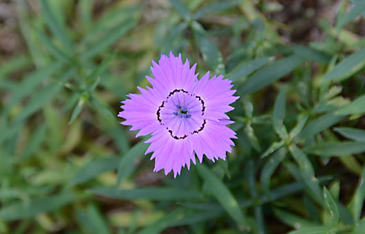 ダイアンサス・シベリアンブルーの1番花が開花しました。和名はないようですが、無理やりこじつければ”シベリア産青花ナデシコ”とでも理解すればいいかと思います。と言ってしまうと、「どこが青いんだい?」と、速攻突込みが入りそうです。いちいちごもっともなご指摘で、かく言う私目も初花が咲いた時、内心そうつぶやいたものです。 通販カタログに掲載された画像では、花の色はシアンをかなり薄めたような色合いでした。ナデシコに特別な思い入れはなかったのですが、花色に釣られて種子を購入してしまいました。2年がかりで咲いた初花は上の画像と同じで、押しも押されもしない見事なピンクでした。落胆は半端ではありませんでしたが、そのまま何もせず4年ほど様子を見て来ました。花の様子に変化はないようなので、そろそろ大幅な規模の縮小に踏み切ろうと思い始めています。