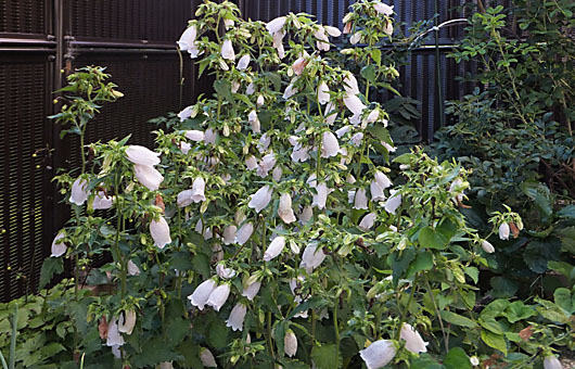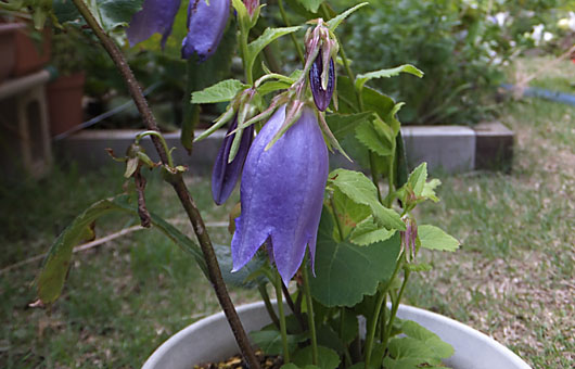 1番花が開花して既に5週間が経過したホタルブクロ(蛍袋)ですが、なかなかペースを落す気配がなく、今も日々50~100輪もの花を咲かせています。画像では分かり難いのですが、釣鐘型の花の間に、おびただしい数の花の残骸を抱き込んでいます。褐色、茶色、黒変したものと様々ですが、萎びて小さくなるためカメラではなかなか全容は捕らえ切れません。 種子を採る気はさらさらないので、盛りを過ぎた花は摘み取ってしまえば見苦しさは避けられるのですが、何分にもこの分量です。何しろ株数は軽く50本を越え、その草丈は小は40cmから大は1mを越えます。手が回らない・・と言えば聞こえはいいのですが、ぶっちゃけた話それだけの根気を持ち合わせていない・・というのが正確なところです。 間もなく花の時期は幕を閉じます。その時点で大幅な株数制限に取り掛かるつもりです。適正数は10株を目安に、一部は近所の草地に移植し、後は堆肥になって貰うことになります。