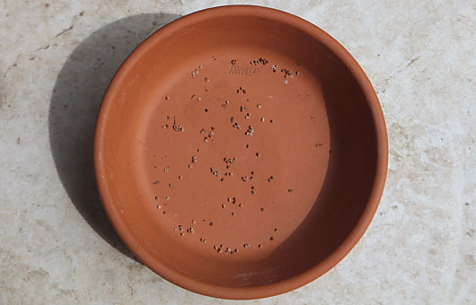 日本サクラソウ(桜草)・「鞍馬」の種子が完熟しました。といっても1個1個はコショウの粉末ぐらいの大きさで、指先で触れて存在を確認できるギリギリのサイズといえます。因みに昨日紹介したキキョウの場合は実感すらできません。 もしこれらサクラソウの種子が採れたら・・ということで想定していたのは、「青葉の笛」と「鋸峰」は種蒔き実行、それ以外は廃棄と決めていました。ところが今年、「青葉の笛」は花さえ咲かず、「鋸峰」は花の段階で花軸を損傷してしまい、種子まで漕ぎ着けることはありませんでした。そんな訳で、廃棄対象にしていた品種ですが、今回は試験的に「鞍馬」の種を蒔いてみることにしました。下画像がその様子ですが、発芽は早くて来年の春になります。