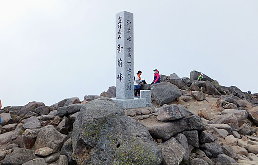 1年ぶりに弾丸ツアーで立山に行って来ました。一昨日の夕方に自宅を出て、立山近傍の3000m級4座を巡って、先ほど(1時を少し回った頃)帰宅しました。画像は立山の最高点3003m地点ですが、ここは雄山神社のご神体になっていて、立ち入るには入場料(祈祷料)500円が必要です。 どうしたことか昨日の立山は、小学生の団体が集中していました。私が歩いた時間帯だけで、50~100名の団体3校に遭遇しました。引率の先生方は安全確保や点呼にさぞかし神経をすり減らしたことと思います。問題は一ノ越から山頂までの狭くて険しい登山路で、登り下りが交錯して身動きも取れない有様でした。登りは行儀よくワタクシも行列に加わりましたが、下山する頃には混雑は一層激しくなり、やむを得ずコース外の岩場をバイパスしながら先を急がせて貰いました。小学生のいい子たち、決してお行儀の良くない爺さんの真似はしないでね。 3時間ほど寝たのですが、まだ眠気が取り切れてはいません。昼夜逆転になってしまいますが、もう少し寝ようと思います。現地の様子は改めて紹介したいと思います。 次の記事≫