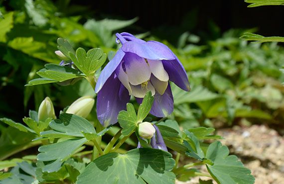 露地のミヤマオダマキ(深山苧環)が開花しました。昨年と比べて8日遅れの開花です。この子たちも開花日の遅れは気になっていたのか、ほぼ一線上に並ぶようにツボミを膨らませて来ました。今日以降一斉に・・・というか、短期間に続々と花を開かせそうな様子を見せています。この様子は故郷(標高2000~3000mの高山帯)で、頭上を押さえ付けていた雪が解けると同時に一斉に動き始め、一斉に開花するのと似たものを感じさせます。標高100mの低地に連れて来られても、種としての本能は忘れていないのは見上げたものです。 一方で低地に来て変化したところが全くない訳でもありません。その一例として草丈の変化があります。山地で見られるミヤマオダマキの草丈は、殆どが30cmから50cmほどに伸びていますが、我が家の個体は殆どが20cm止まりです。1株当りの花の数は我が家のものが多い様ですが、その訳は我が家では上には伸びずに、横に広がっていることによる様です。山地では他の草より上に頭を出さなくては十分な日差しが得られないのに対して、我が家ではそうした障害が殆どないことが原因かもしれません。我が家の育て方には、少し”甘やかせ過ぎ”な点があるかもしれません。