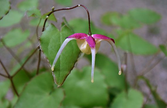 イカリソウ(錨草)・「楊貴妃」の1番花が開花しました。昨年と比べるとちょうど半月遅れの開花です。流石にこの時期まで季節が進むと、1番花によくありがちな、形の崩れや部分的な褪色といった障害は見られず、ほぼ完全な容姿を実現しています。その副作用という訳ではありませんが、花の寿命はグンと短くなり、この個体も明日には散ってしまう運命にあります。1月、2月に早咲きした雪割草が10日前後も長持ちしたのと比べると、少し哀れになってしまいます。 この品種も増えに増えて、現在5鉢に分けて植え付けています。可憐で美麗な品種だけに、これまでは増えるに任せていたのですが、流石にこれ以上は長屋住まいの身では持て余します。一部は露地に植え付けるなどして負荷の軽減を図るつもりですが、いずれは嫁ぎ先を探すなどの措置が必要かもしれません。