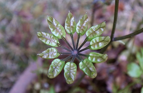 1月上旬に1番花が開花し、厳寒の時期に咲き続けたセリバオウレン(芹葉黄連)でしたが、今は葉っぱも新しいものに置き換わって、新緑に包まれています。そうした新緑を押し分ける様に、宴(花)の遺物が矢車の様に林立しています。画像はそうした10数本の矢車の一つです。何分にも花粉を媒介する昆虫など全くいない時期の開花だったので、受粉が行われることは全く期待もしていなかったのですが、軽く摘まんでみるとしっかりした手応えがあります。圧倒的な多数派だった雌雄両性花が、僅かな風などで自家受粉したのかもしれません。 我が家で保有するセリバオウレンは今は壮年期と考えられ、後継を考慮する必要性は殆どありません。種子は間もなく完熟すると思いますが、その時には一旦採取し長期冷蔵保存するか、近傍の草地に蒔くか、この子たちの頑張りに応える方策を考えてやろうと思います。