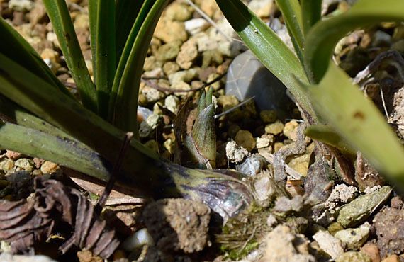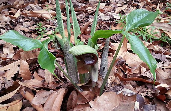 4年ほど前に野に還したムサシアブミ(武蔵鐙)の様子を見に行ってきました。葉っぱはまだ完全に展開し切っていませんが、仏炎苞は既定の形を整えていました。定点観測を行っている訳でもないので、この時期にこの状態が早いのか遅いのか・・・といった論評はできませんが、仏炎苞が幾分小さくなったという印象は拭えません。この個体をこの場所に移植した時点では、球根(芋!)の大きさは大人の拳骨ほどあったのですが、現在の画像では4株確認できます。つまり1球が4球に分化したことになる訳ですが、それを支えるだけの栄養分がこの場所には存在しない・・・ということかもしれません。 一方で我が家の花壇の個体は?・・・というと、芽出しこそ済ませていますが、仏炎苞はまだ姿を見せていません。昨年仏炎苞が展開したのは4/10頃だったので、この品種に関しては平年並みの成長ペースを維持している様に見えます。