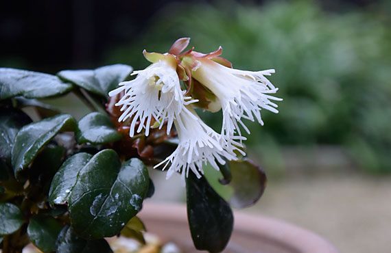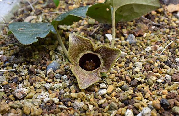 こちらは帰宅したら開花していたコシノカンアオイ(越ノ寒葵)です。一般的な花の”しなやかさ”は持ち合わせておらず、落花生の殻を想像して戴ければいいかと思います。今年のこの品種の作柄は「甚だしい不作」で、開花したのはこの1輪だけです。昨年開花時期に強烈な寒波に見舞われ、開花中、開花準備中の花やツボミが凍傷で全滅した事件が尾を引いているものと思っています。暖冬の後の、不意の寒波に足をすくわれた形で、この点だけに注目すると一見軟弱そうな印象ですが、実はかなり強烈な繁殖力を発揮しています。そのツボミの全滅事件でも、株そのものが枯死に至ったものはなく、現在もリハビリ中といったところで、次のシーズンには”完全回復”以上の作柄になるのでは・・・などと思っています。