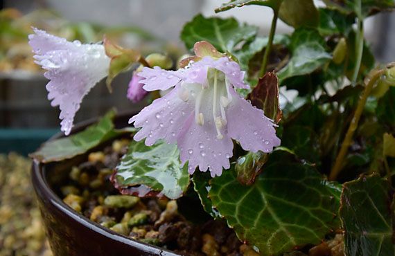 2週間もの長期に亘り投稿が停止してしまいました。実はこの間、体を壊して病院に収容されていました。生まれてこの方(68年間)、初めて体に刃物が入るという恐怖(といっても全身麻酔で全く記憶はありませんが・・・)も味わってしまいました。あっちこっちを切ったり貼ったりして戴いた結果、どうにか生還できました。体調は完璧とは言い難い状況ですが、何とか原状回復を第一目標に置いて日々を過ごして行きたいと思っています。 入院で不在の期間に春の草花は最盛期を迎える筈だったのですが、桜が幾分遅れている様に、山野草も足踏み状態が続いた様です。それでも入院前に最盛期だった雪割草は完全に幕を降ろしてしまい、開花直後だった白花ショウジョウバカマ(猩々袴)は花も終幕期に差し掛かっていました。画像はちょうど今、最盛期を迎えようとする段階のイワウチワ(岩団扇)で、用意したツボミの凡そ半分まで咲き進んでいます。その他の品種はこれからが本番・・・といったところで、この先、逐次取り上げて参ります。今後もどうかよろしくお願い致します。まずは復帰のご挨拶まで。