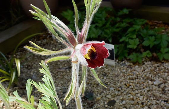 露地の日本オキナグサ(翁草)が開花しました。この2年ほどは全滅状態だったため比較できる情報はありません。で、鮮度に疑義は残りますが、3年前のデータと比べると1週間ほど遅れの開花ということになります。3月末の寒の戻りは、少なからず草花全般の成長のブレーキになった様です。 以前この品種をポットやプランタで栽培していた頃と比べると、全体の印象はかなり変わってしまいました。具体的にいうと、花の大きさは殆ど変わっていませんが、背後に放射状に広がる茎葉が2倍近くに大きくなり、茎そのものも凡そ4mmと野太くなってしまいいました。培地の花壇に大量の腐葉土や醗酵牛糞を梳き込んだ効果(副作用?)と言えそうです。 もう一つの問題、冒頭でも述べた様に2年間ほど全滅期間がありました。これは繫茂期が続いた後、突然枯れてしまう・・・という予想外の振舞いがあったためで、こうしたリスクに備える意味でも、この花では是非とも種子を採取しておかなくてはいけません。そのために人工授粉を含めて、可能な手立てを尽くさなくてはいけないと思っています。