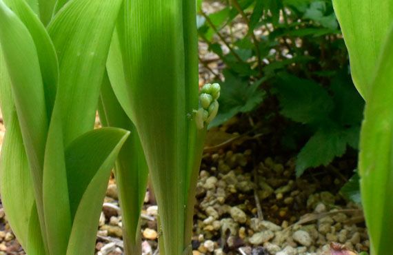 こちら、ドイツスズラン(鈴蘭)もやる気満々の様です。昨年は完全作落ち(開花見送り)したため、果たして今年は・・・と気を揉んでいたのですが、どうやら杞憂に終わりそうで一安心といったところです。個体数は大雑把にいうと昨年比5割増といった眺めで、一転して豪華な開花風景が実現しそうな雰囲気です。裏返すと、この品種もそろそろ総量規制で数の規制に取り掛からなくてはならない規模に近付きつつあります。 先ほど説明した通り、昨年は作落ちしたため前年比較はできません。で、一昨年のデータをめくってみると、この時期には1番花は既に開花していました。この品種もまた、右に倣え・・・で開花時期はベタ遅れです。画像の通り、ツボミの様子は小豆粒にも満たないサイズで、開花はGW後半になるかもしれません。