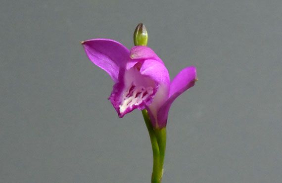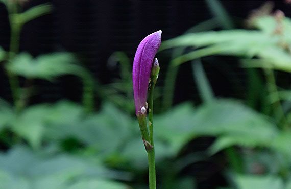 先般山口県に出掛けている間に、サワラン(沢蘭)に花芽が立ち上がっていました。その後もぐんぐん花芽は伸びて、ツボミがそれと判る大きさになってきました。現在のツボミの大きさは、左の大きい方で米粒程度・・・といったところです。開花時の花弁の長さは2~2.5cmということなので、米粒大というのは人間に例えれば幼稚園児相当といったところでしょうか。尾瀬近辺の湿原では8月頃が花期のようですが、我が家でこの個体が開花するのは梅雨のさ中になってしまいそうです。 ところでこの花に関する解説サイトによると、一茎一花が基本で、稀に二花が見られるそうです。画像にはツボミらしきものが2個確認でき、双方ともこのまま順調に生育すれば、その”稀”なケースということになります。この先何が起こるか分からないので、軽々しく喧伝する訳にはいきませんが、暫くはこの花茎の先端に大注目です。