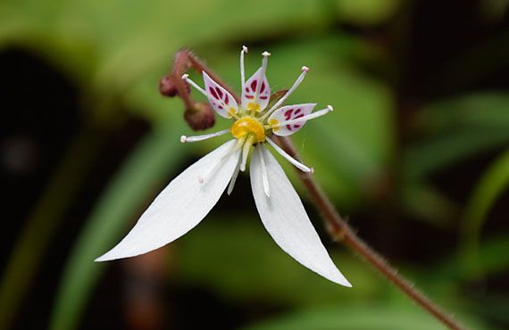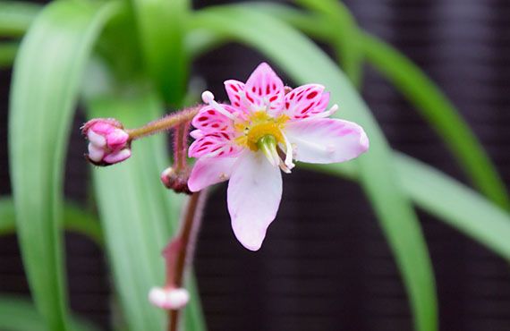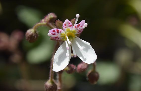 ユキノシタ(雪ノ下)が最盛期を迎えています。こうなると一つ一つの花を取り立てて注視することはなくなります。で、今回は敢えて1輪にスポットを当ててみることにしました。 ざっと見回して、1番の美女(美男?)がコレ!!などと言ってしまうとかなり語弊がありますが、形や顔立ち(赤い斑点模様)を総合的に見て上位にあることは間違いありません。どうです? この流れるような長い脚線の美しさ。