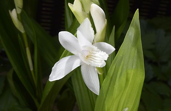 白花シラン(紫蘭)が咲き始めました。昨年と比べて7日遅れの開花です。これまでに開花した他の草花では12日から15日遅れのものが多かったことを思うと、遅れの幅は少し縮まったと言えそうです。昨年は盗賊(害虫)の大発生で、開花早々から花の命、顔を食われるものが続出しました。今年も同じ種類の賊が一足早く大発生し、ドイツスズランの葉っぱが大きな被害を被りましたが、特効薬・キ○チョ-ルを早々と取り出して駆除に当たった結果、今のところこの品種での被害はごく軽微です。 この品種の花期は長く、6月に入るまでは咲き続けます。その花が一巡した頃を見計らって、現在の場所から、もう少し日当たりのいい(つまり乾燥し易い!!)場所に、個体数圧縮を伴う大移動を行う予定です。一部は新たな嫁ぎ先を探すつもりですが、あぶれるものも出るかもしれません。