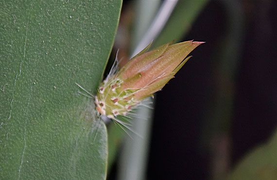 長い間作落ちが続いたシャコバサボテンが、4年ぶりに花を咲かせそうな雰囲気が漂い始めました。この品種で最後に花を見たのは2013年でした。花が咲かないのは株の老化が原因かも・・・と、然したる根拠もなく想像していたのですが、今のツボミが付いたのは、こともあろうに1番か2番目に古い部位でした。早い話、花を付けなかったのは日常の面倒見の悪さに起因していることがバレる結果になってしまいました。いやはや、お恥ずかしい限りで・・・・ それはそれとして、4年前の花が開花したのは5/8でした。画像のツボミのサイズ(2cm)から推測して、1週間やそこらでは開花しそうにありません。年間通して屋内に置いていて、春先の寒の戻りも無縁だったにも関わらず、です。面倒見に関する手抜きは、作落ちするだけでなく、開花時期、つまり草花の生活のリズムまでも狂わせてしまうようです(反省)。