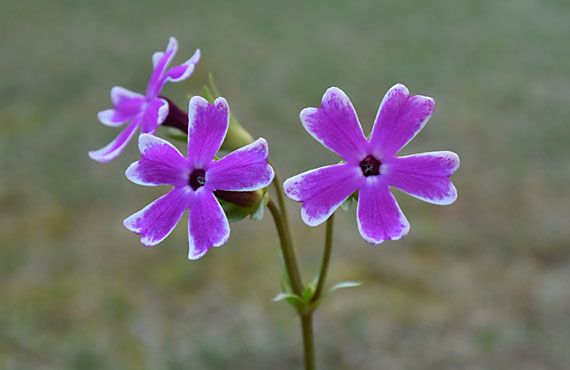 自称・ハクサンコザクラ(白山小桜)が開花しました。昨年と比べてほぼ2週間(実数=13日)遅れての開花です。この品も、今年のトレンドにほぼ完全に同調しています。花の数は昨年と同じ3輪・・・ということは、この1年は何の成長もなかったと言われかねない成績です(反省)。今年は肥料の種類を変えてみて、どうなるか様子を見ようということで、新しいものを調達しました。 ところで冒頭で”自称”などと意味不明な単語を付加してしまいましたが、正確にいうと種苗会社は「ハクサンコザクラ」と宣言していますが、花の容姿から判断してワタクシには「違う!!」という回答しかできません。理由は、(1)ハクサンコザクラの花弁に白い縁取り(覆輪)は入らない、(2)ハクサンコザクラの花弁の切れ込みはもっと深く、”V”の字に近い、(3)ハクサンコザクラの花弁中心部は白く、更にその中心部は鮮やかな黄色である・・・などの理由に基づくものです。これだけ形状や配色の違うもが販売されたのは、種苗会社で何らかの取り違えがあったのではないか、などと思っていますが、だったらこれは何者か・・・という疑問は解決していません。この疑問が解消するまでは、頭に”自称”という冠を付け続けることにします。・・・という様な騒ぎを別にすれば、花はきれいでしょ?