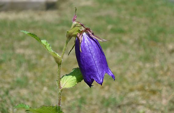 青花ホタルブクロ(蛍袋)が開花しました。偶然ですが1番花の開花は、昨年と同じ日になってしまいました。この1品だけで判断するのはいささか乱暴ですが、4月開花の草花が最大半月遅れていたものが、この時期、この品種でやっと遅れを回復した様に見えます。 そうした背景は横に置いて、いつもながらの鮮やかな発色です。この青みの強い紫が、この花の最大の魅力と言えます。もう1点保有する白花品と比べると、花は1回り大きく見栄えもしますが、鉢植えではそうそう増えないのが難点でした。そこで昨年秋に植え替えた際、試験的に1芽分を露地に植えていました。結果はなかなか良好で、株数も幾分増えただけでなく、1枚1枚の葉もかなり大きく育っています。今年は初めて”増殖”と言える状況が実現するかもしれません。