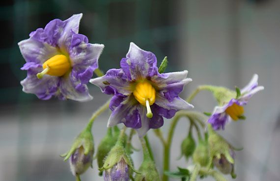 この地方も梅雨に入りました。こんな頃合いを待っていたように、ジャガイモに花が咲き始めました。品種は「メークイン」です。ジャガイモの場合、「花=収穫の頃合い」という風なことを聞いたか、Web情報で見たことがあります。適当な晴れ間を見計らって、さっさと収穫してしまおうと思います。 このジャガイモは特に植え付けたりしたものではなく、冷蔵庫で長期間放置していて芽が出たり、萎びて食べられなくなったものを、この場所に廃棄したものが原点になっています。既に3年か4年が経過しています。ジャガイモやトマトなど、ナス科の作物には連作障害があるらしいのですが、そうした問題には無頓着で過ごさせてきました。今年もそれを繰り返すと、そろそろ何かが起こりそうな気がしないでもありません。今年は全面的に掘り上げて、全てを腹に入れてしまうことにします。その後は粘土質の土壌改質が終わるまで、何も作付けせずに過ごさせることにします。