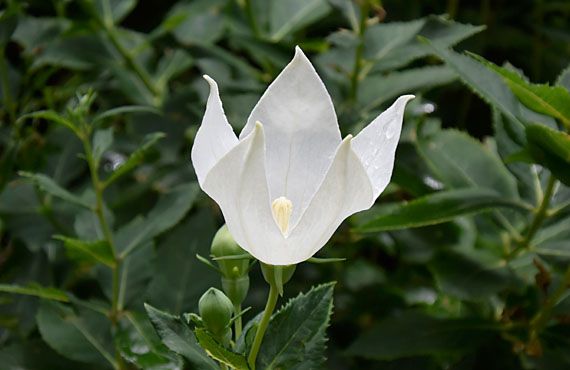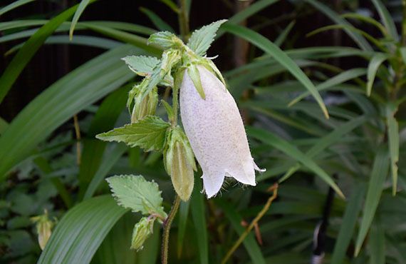 アポイギキョウ(アポイ桔梗)が咲き始めました。昨年と比べて6日遅れの開花です。例年通り、1番花は白花でした。この画像は昼頃に撮影したもので、花弁は半開き状態ですが、夕方見に行った時にはフルオープン状態になっていました。残念ながら、その頃には薄暗くなっていて撮り直しという訳にはいきませんでした。 この花の茎が伸び盛りの頃、正体不明の賊により先端の成長点や柔らかい葉っぱを食い荒らされてしまいました。普通なら食っている現場や満腹で休んでいるところを目撃するのですが、今回この品種の食害に関しては全く見かけることがありませんでした。そんな訳で未だに賊の正体は分からないままですが、もしかするともう羽化して現場を離脱したのかもしれません。口惜しや ....。