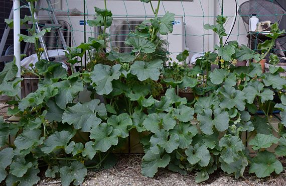 機能発揮まであと50cmに迫ったグリーンカーテンです。植えているのは「シルクロード」というメロンです。この場所には昨年まで山芋を植えていたのですが、大量に実るムカゴで小さな菜園は原生林のような有様になっていました。これにギブアップして、昨年秋からこの春先までに、手の及ぶ限りの元凶(地中の芋やこぼれたムカゴ)を取り除きました。今も毎週数本の芋の蔓が芽を出していますが、草取り工具が届く範囲の芋を抜き上げ、それも届かないような深いものは最低でも蔓は切り取っています。地中に残った種芋も、蔓や葉がなければエネルギーは補給できず、長期的には衰退して消えてしまうだろうという魂胆です。 話が横に反れてしまいました。メロンは合計3本植え付けていますが、画像はそのうちの2本分の範囲を写し込んだものです。このカーテンでできる日陰には、高温に弱い高山系の草花を避難させる予定です。日陰を提供する以外、つまり本業の方では全体で5~10個の実が取れれば・・・などと思っているのですが、さて思惑通りコトが進むかどうか。二兎追う者は・・・とはいいますが、ワタクシとしては大まじめに二兎を追っています。