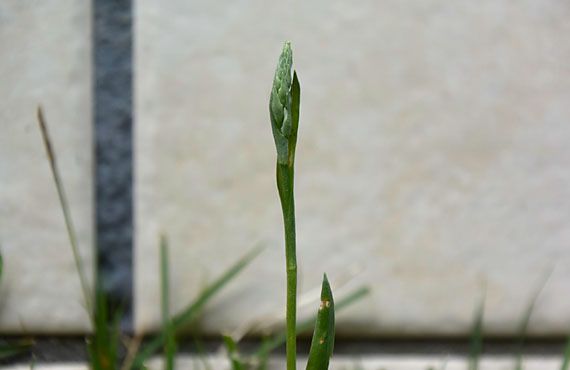 芝生のネジバナ(捩花)の花芽が、それと分かる形まで大きくなりました。この個体は2週間前まで、芝生の真ん中辺りで踏み付けられてクシャクシャになっていたのですが、安全地帯に引っ越して僅かの間にここまで立ち直りました。油断するといつの間にか全滅して姿を消すこともある一方で、こんな復元力を持ち合わせているのを見せられると、生命の不思議さを感じさせられます。 昨年、我が家のネジバナはプランタに植えたものが先行し、6/23に1番花が開花しました。今年は露地(芝生)の方が幾分先行しており、中でもこの個体が先頭を切って走っています。今年も同程度の時期に開花するとすれば、あと半月ほど・・・ということになりますが、今年は個体数がほぼ倍増しているので、ちょっぴり賑やかな景観が実現するかと期待しています。