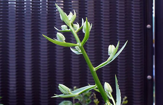 原種ユリ(Lilium davidii )が急ピッチでツボミを膨らませています。10日前に取り上げた時は、花茎の先端で密集した葉っぱに首を竦めて隠れる様な格好でしたが、今は枝もしっかり伸びて随分スマートになってきました。ツボミにはまだ色は乗っていませんが、それも来週末ぐらいには変化が起きようかと思います。開花は月半ばくらいでしょうか .... この品種は一時は1株のみという状態まで追い込まれて、”全滅"が頭をよぎったこともありました。現在は若干勢力を回復して4株まで戻しています。増え過ぎるのも頭痛のタネになりますが”全滅”はもっと痛みが強い訳で、今程度の勢力を維持してくれるのが最良なのですが、何事も思い通りにはならないのが常の様です。
