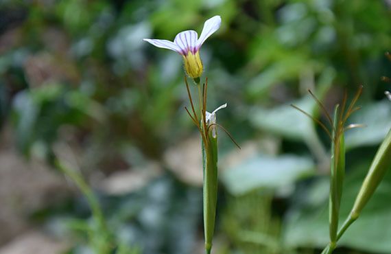 我が家のニワゼキショウ(庭石菖)が咲き始めて1ヶ月半経過しました。普通の草花ならとっくにエネルギーを使い果たして、花期を終えている筈ですが、この品種は今なお日々5輪から15輪の花を咲かせ続けています。因みに現存の株数は2株です。 こうして次から次へとツボミを供給し続けているのが、花の下にドーンと構えている袋です。まるでドラえもんの四次元ポケットのように、次々とツボミを出し続けています。何回かこの場で説明しましたが、花後放置するとほぼ100%種子を生成し、爆発的に増殖してしまいます。この増殖にブレーキを掛ける目的で、花が萎れたら直ちに摘花しているのですが、その痕跡が袋から伸びているヒゲの様なものです。このヒゲは花柄の一部ですが、摘花の際根元から抜けてしまうものもあるため、痕跡として残ったのは概ね半数ぐらいかと思います。際限ないかのような開花エネルギーの秘密は、この四次元ポケットにありそうですが、一度この袋を解剖してどんな構造になっているか確認してみたいものです。