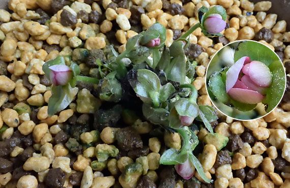 この子、雪割草の「桃珊瑚」も出番を伺っています。こちらは跳ね上り者が1輪だけ・・・というのではなく、ザっと10輪近くが一斉にツボミを覗かせて、その時が来るのを待っています。とは言え、寒さ厳しき時節ゆえ、その歩みは超鈍足です。ざっと予想して、最初の1輪が開花するのは今月下旬、遅ければ2月にずれ込むかもしれません。 それにしてもポットの表土の汚れは、見過ごしできないところまで進んでしまいました。固形肥料を置いていたところがこうなってしまったのですが、このままでは花が咲いても見栄えの足を引っ張る存在になってしまいそうです。早い時期に表土だけでも更新して、春を迎える環境を整えることにします。