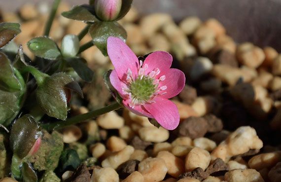 これまで品種不詳だった雪割草の正体が、3年目にしてやっと明らかになりそうなところまで漕ぎ着けました。冬芽も大豆粒サイズまで膨らみ、これなら今年の花付きは間違いなかろうという段階に到達した訳ですが、随分長く待たされた印象です。 どこからか定かではありませんが、飛散した種子が異品種のポットに捕まり、発芽したのに気付いて3年経ちました。意図して種蒔きしたものでもなく、当然品種や花の形態も全くわからないまま、ただただこの時を待って見守ってきました。この間、新規にリクルートした品種が、夏の高温や冬の凍結に耐えられずに枯死する・・・というアクシデントもありましたが、この子はそうした難局も何とか乗り越えてきました。期待するとは言っても、これまで栽培したもの以上の花が実現する訳ではありませんが、それでも初花開花の時は待ち遠しいものです。