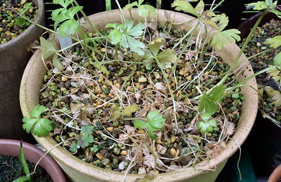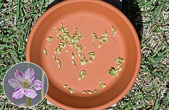 1週間ほど前、雪割草の新顔3品を植え替えましたが、その際大量の種子が実っていて、その完熟には半月ほどかかりそう・・・などと見通しを述べてしまいました。それからまだ1週間も経っていませんが、昨日覗いてみるとポットの周辺にその種子が散らかっているのに気が付きました。慌てて落果した種子を集め、更には花軸に残っている種子も掻き落として、可能な限りの種子を集めたのが上画像です。 一見青々としていて未熟の様に見えてしまいますが、実はこの色合いで十分に熟している様です。「採ったらすぐ蒔く」の鉄則に従って、今日にも播種しようと思っています。