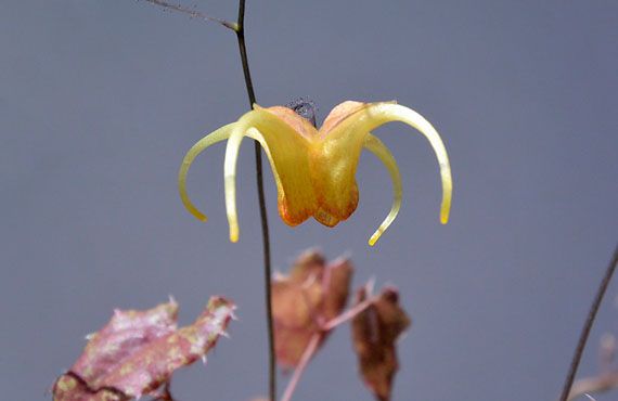 黄花のイカリソウ、「アンバー・クイーン」が開花しました。昨年と比べて12日も遅い開花ですが、昨年は今年と肩を並べる様な暖冬でした。で、更に1年遡ってフツーに寒かった18年と比べると、何と24日も遅い開花ということになりました。「暖冬だから早咲き」という、素人が飛び付きそうな論理は総崩れです。幸い株の健康状態には特段の異変は認められないことだし、これ以上の追及は止めておきます。因みに葉っぱが赤茶けて枯葉の様に見えますが、これでも十分な健康色です。この品種は葉を落とさずに冬を過ごしますが、越年葉は半分枯れて見苦しいので、新しい葉や花芽が出る前に全て刈り払ってしまいました。花が終る頃には葉緑素の充填も完了し、見た目も健康な緑に変わります。 ここで話題転換。イカリソウはこれまでに開花した「楊貴妃」とこの「アンバー・クイーン」の他に、純白の「小雪」、在来ピンク花の計4種を楽しんで来ました。この内、「小雪」は昨年の暖冬に騙されて、1月に続々と芽を出してしまい、その後のキツ~い寒の戻りで手酷い凍傷を負い、全滅してしまいました。また在来ピンク花は健康上の問題で、今年の花は見送りとなってしまいました。この1年、イカリソウに関する限り、多難な年となってしまいましたが、来春までに4種復活を目指してリクルートに当たるつもりです。