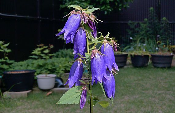2日前に1番花が開花したばかりの青花ホタルブクロが早くも見頃を迎えました。僅か2日でツボミの半数余りが開花し、花茎は鈴生り状態です。もちろん1番花も健在で、まだ容姿の衰えは感じさせません。あと2日から3日は今の状態を維持してくれそうです。