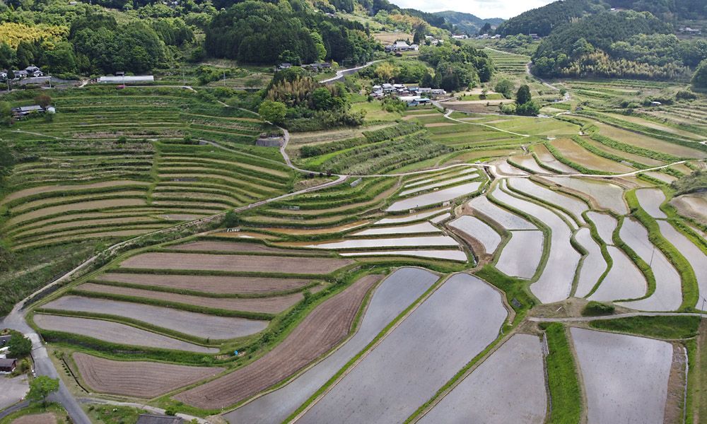 この1ヶ月、感染対策のため神戸市西区から外に出ない、という自粛生活に明け暮れてきました。この間、ネット情報で岡山県久米南町に棚田百選にも選ばれた美しい棚田が存在することを知りました。つい最近になって、規制は部分解除されましたが、県境を跨いでの遠出には、まだ縛りが残っています。とは言え、田植えシーズンを過ぎればあっという間に棚田のベストシーズンは通り過ぎてしまいます。ということで不要緊急という取って付けた様な理由で片道150kmの中距離ドライブをしてきました。岡山県の皆さん、ゴメンナサイ。 久米南町は平野部を1歩出れば、どこを見ても棚田だらけという印象です。そうした中でも3ヶ所ほど特に優れた景観の地域がある様です。画像はその内の1つ、大垪和西(おおはがにし)棚田で、上空約50mからの空撮画像です。朝早い時間帯は「雲一つない」晴天でしたが、現地で機材を持ち出す頃には空の半分が雲に覆われる状況になり、画像内でも日差しのあるところ、ないところのムラが出てしまいました。今回は夕方明るい内に自宅に戻りたい事情があって、他の2ヶ所には立ち寄れずに戻って来ました。今年の田植えシーズンは無理ですが、時期を変えて他の二ヶ所にも出掛けてみたいと思っています。