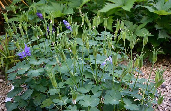 ミヤマオダマキの花も最後の数輪が開花して、とうとう幕引きの時を迎えました。実生から3年目を迎えて株も成熟期に入り、花のボリュームも見事でしたが、それに比例して膨大な置き土産を残そうとしています。それが大量の種子です。このまま放置するとこの月末頃には鞘が弾け、大量の種子をまき散らすことになります。 翻って現在の個体数は、指折り数えて片手に余る陣容となっています。当面は補充や後継育成を考える必要はありません。ということで、今実っている種子は全て撤収することにしました。1本1本の種子を鞘ごと切り取り、丸坊主にした様子が下画像です。折角実らせた種子を、残らず刈り払うなど鬼の所業ですが、これも小さな花壇を秩序立てて維持する上で不可欠な措置です。ということで、来年もいい仕事ができる様、根や茎の充実に全勢力を注いで貰いたいものです。