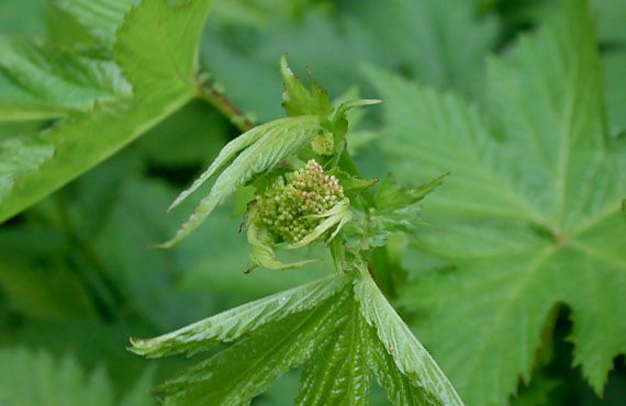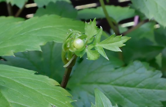 レンゲショウマ(蓮華升麻)もツボミを始動させました。花の時期は、この辺りでは7月後半なので、2ヶ月もの長い助走期間ということになります。実はこの助走期間が長いことが裏目に出て、とんでもない災難に遭うことがあります。 昨年もそうでしたが、この時期には大量のツボミを確認していました。ところが成長の途上で発生した賊ども(毛虫です)に花芽を食い荒らされて、開花に漕ぎ着けたのは片手で数えられるほどの少数でした。敵は日中は葉裏に潜んで、夜間早朝に這い出してきて食い放題パーティに及んでいるらしく、完全駆除に手間取り手酷い被害を被ってしまいました。今年もそんなことになりはしないか、気が重いシーズンの始まりでもあります。