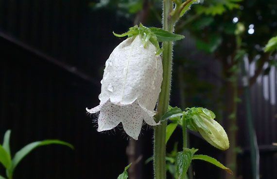 予想に反して早々とホタルブクロが開花しました。1週間を超えると予想したものが、半分の期間で駆け抜けてしまった訳で、ワタクシとしては”穴があったら入りたい”心境です。 という様な与太話は横に置いて、多い時には数100輪を誇ったこの品種の作柄が、今年は多めに見ても20輪止まりになりそうです。ツボミの立ち上がり時期に正体のよく分からない毛虫が発生しツボミを含む成長点を根こそぎ喰われたことが最大の要因です。特段綺麗な花でもなく、数100輪は要らないとしても、100輪程度はコンスタントに咲いて貰いたいものです。などと言いつつ、飛び道具(蝶や蛾など)を相手に、どんな手立てで感染(大発生)を防ぐか、頭を抱えてしまう大問題です(溜息)。