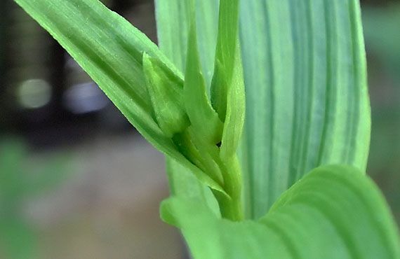 3週間前、白花のネジバナが開花したことを紹介しましたが、あれは若齢株(推定実生2年 )の早咲きで、花序に花が1輪だけという侘しい状態で開花してしまいました。これもあと1年経てば、立派に捩じりを利かせた姿に大化けする筈です。 こうした”走り”に対して、ドッシリ構えて己が気に入った気候の到来を待って動き始めるのが本隊に所属する古参の一群で、ここに来てやっと重い腰を上げました。我が家では概ね6月末から7月半ばにかけてがシーズンです。左の個体は先頭争いを演じているもので、ドッシリと構えた軸太の花軸の先に10~15cmに達する花序を付けます。右は花軸が姿を現す直前に何者かに葉っぱを喰われて更地状態になっていましたが、幸いキズは成長点には達していなかった様で、保護者(葉っぱ)なしで姿を見せたツワモノです。昨年は1株でしたが、今年3つに分裂して姿を見せました。こうした陣容で花期本番を作り上げることになりますが、早い個体はあと1週間ほどで開花し始めます。