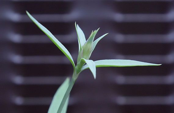 昨年7/14に種蒔きをして、その1週間後に発芽が始まったアムールナデシコに、ツボミが発生しました。発芽から10ヶ月も経っていないというのに、何とも早熟な話です。流石はシベリア(アムール川流域)の厳しい気候下で鍛え抜いた特性・・・ということでしょうか。 この子の親は種蒔きから10年を超える古参株です。開花が始まった頃には10数株が育っていましたが、昨年秋時点で生き残っているのは1株のみでした。何度か株分けして全滅のリスクを分散しようとしましたが、塊根が複雑に絡み合っていて、分割の手がかりを見つけられず、1点のみの生き残りに乱暴な手術はできませんでした。昨年は万一の場合にも、後を継ぐ新株が大量に揃ったことで、分割で大きなダメージを負っても、全滅の心配はなくなり、古参株に対して、目を瞑って斧を振り下ろす様な分割をしてしまいました。幸い分割した両方とも無事に定着し、今年も大量の花を咲かせようとしています。この品種に関する限り、この1年は実にウハウハな1年でした。
